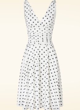 “It’s all about women empowerment, hunnie!” Dit seizoen hebben onze getalenteerde in-house designers zich laten inspireren door draagbare en klassieke silhouetten met een White Collar Edge; items voor de power vrouw die de zakenwereld omver blaast met haar hyper vrouwelijke silhouet. Dianne is uitgevoerd in een stevige maar toch soepele, wit/ marineblauwe stof met een lichte stretch die perfect aansluit zonder af te tekenen! * Pencil stijl * V-halslijn * Puntig revers kraagje * 3/4 mouwtjes met puntige omslagjes * Gevoerde top (voorkomt doorschijnen) * Split aan de voorzijde * Blinde rits aan de achterzijde * Gorgeous model en Pin Up Doll next door Greta Gardner is 1,72: haar pumps en accessoires zijn haar eigen treasures