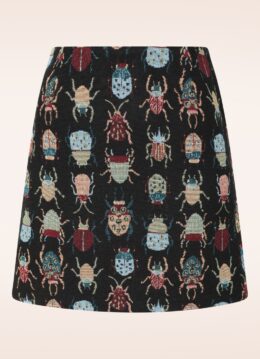 “Printed to play, tailored to slay… this jacquard mini does both.” Dit speelse A-lijn rokje is uitgevoerd in een iets dikkere en stevige jacquard stof (stretcht niet!) met een print van kleurrijke kevers. * A-lijn model * Zilverkleurige rits achterzijde * Volledig gevoerd * Valt bij een lengte van 1,70 m boven de knie