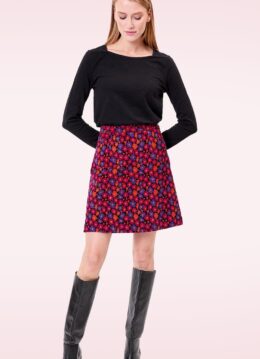 “A ribbed fabric skirt bursting with mega bold retro florals!” Dit A-lijn rokje is uitgevoerd in een stevige maar stretchy, subtiele ribfluwelen katoenmix in zwart, voorzien van kleurrijke retro bloemen. * A-lijn model * Rits- en knoopsluiting zijkant * Valt bij een lengte van 1,70 m boven de knie