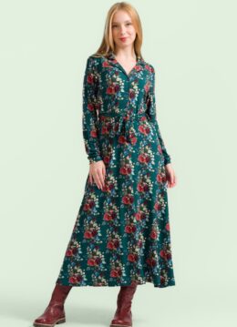 ”Falling for fall… and for Helena!” Op deze prachtige maxi jurk raak je nooit uitgekeken. Want wow… wat een geweldige bloemenprint in warme, herfstachtige kleuren! Helena is uitgevoerd in een superzachte, soepele en stretchy EcoVero viscosemix die heerlijk draagt en bij elke stap sierlijk met je meebeweegt.   * Maxi jurk * Revers kraag * Lange mouwen * Knopenreeks * Afneembare striklint, voor een extra ‘snatched’ taille * Reikt bij een lengte van 1,70 m tot boven de enkel * EcoVero viscose