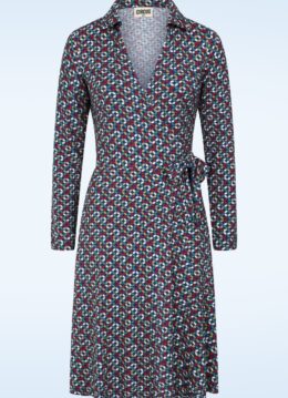 “Sustainably wrapped, boldly patterned, effortlessly chic.” Deze wikkeljurk heeft een kleurrijke, geometrische bloemenprint, lange mouwen, vaste strikbanden en handige steekzakken! Ze is uitgevoerd in een stretchy en soepel vallende, blauwe Ecolivamix (100% plantaardig materiaal), die heerlijk comfortabel draagt.  * Wikkeljurk * Puntige kraag * Lange mouwen * Vaste strikbanden * Voorzien van zakken! * Reikt bij een lengte van 1,70 m tot net over de knie