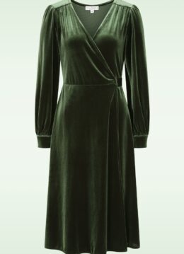 “Buy this dress and let your closet thank you later.” 😉 Dalida is uitgevoerd in een soepele, stretchy en zachte stof in olijfgroen, met de luxe look & feel van fluweel, heerlijk comfortabel en stijlvol tegelijk. * Wikkeljurk met vaste strikbanden * Lange pofmouwen met manchet * Valt bij een lengte van 1,70 m over de knie
