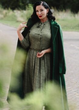 ”Party season has arrived”… en je bent er helemaal voor met Phoebe! 😉 Deze swing beauty is uitgevoerd in een soepele, stretchy en glanzende, groene plissé stof die niet kreukelt en prachtig met je mee beweegt. * V-hals * Lange mouwen met manchetten * Ritssluiting achterzijde * Valt over de knie bij een lengte van 1,70 m