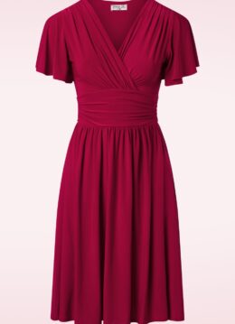 Een echte vintage beauty en perfect voor elke gelegenheid! Uitgevoerd in een glad en soepel, stretchy, dieprood slinky stofje dat heerlijk draagt en niet kreukt. Geniet van de complimentjes die je krijgt, zodra je Sadie draagt! * Semi-swing stijl * Gevoerde top * Vaste overslag * Korte vlindermouwen * Geplooide tailleband * Geen rits of knopen; aantrekken en ready to go! * Valt bij een lengte van 1,70 m over de knie