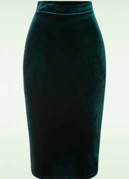 Met deze sexy en stijlvolle 50s Glendie Velvet Pencil Rok in Flessen Groen ben je helemaal party-proof! Dit model sluit prachtig aan waardoor jouw rondingen perfect worden benadrukt. Uitgevoerd in een stretchy, donkergroene fluwelen stof die je rondingen prachtig benadrukt zonder af te tekenen. Deze rok komt wel met een waarschuwing; ze is namelijk hot, hot hot! * Aansluitend taillemodel * Geen rits of knopen * Geen split * Valt bij een lengte van 1,70 m over de knie * Exclusief bij Topvintage verkrijgbaar