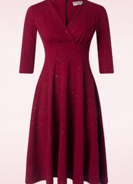 Topvintage exclusive ~ Glinda Glitter swing jurk in wijnrood