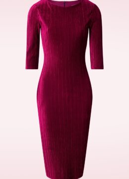 Topvintage exclusive ~ Laura Pleated Velvet pencil jurk in wijnrood