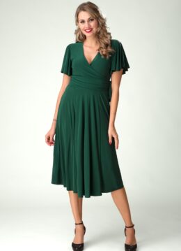 Topvintage exclusive ~ Irene Cross Over swing jurk in bosgroen