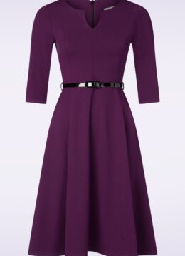 Topvintage exclusive ~ Helaine swing jurk in aubergine