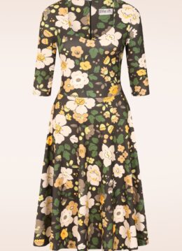 Topvintage exclusive ~ Jules Floral swing jurk in bruin
