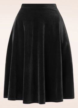 Feestdagen of gewoon een dagje full glamour? Deze 50s Sheila Swing Skirt in Black Velvet is jouw sidekick! Deze beauty wordt hoog in de taille gedragen en waaiert prachtig uit waardoor je een super vrouwelijk zandloper figuur krijgt, oh la la. Uitgevoerd in een soepel vallende, stretchy, zwarte fluwelen stof die mooi glanst zodra er licht op valt. Niets is zo charmant als een vrouw in glanzend fluweel! * Swing rok * Zijwaartse steekzakken * Geen rits of knopen * Elastische taille * Valt net over de knie bij een lengte van 1,70 m * Exclusief bij Topvintage verkrijgbaar