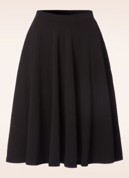 Dagje kantoor, shoppen of een avondje uit… deze Sheila Swing Skirt in Black is jouw sidekick! Geschikt voor iedere gelegenheid dankzij haar classy en sophisticated uitstraling maar ook door haar héérlijk draagcomfort! Deze beauty wordt hoog in de taille gedragen waardoor je een prachtig zandloper figuur krijgt, oh la la. Uitgevoerd in een soepel vallende, stretchy, zwarte stof die elegant met je mee beweegt. All day, every day, Sheila all the way! * Full swing * Zijwaartse steekzakken * Geen rits of knopen * Valt bij een lengte van 1.70 m net over de knie * Exclusief bij Topvintage verkrijgbaar