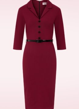 Topvintage exclusive ~ Ruby Allure pencil jurk in wijnrood
