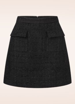 ”Bad vibes don’t go with my outfit!” Georgia wordt hoog in de taille gedragen en loopt uit in een flatterend A-lijntje met zakjes aan de voorzijde. Ze is uitgevoerd in een iets dikkere, stevige, zwarte tweed-achtige stof (stretcht niet) die bovendien geheel is gevoerd voor extra comfort. Hoe ga jij Georgia stylen?! * A-lijn * Zakjes voorzijde * Ritssluiting achterzijde * Valt bij een lengte van 1,70 m boven de knie * Maak je look compleet en combineer haar met het bijpassende Georgina tweed jasje * Let op; de kleur van het product op de video kan afwijken van de daadwerkelijke kleur van het product