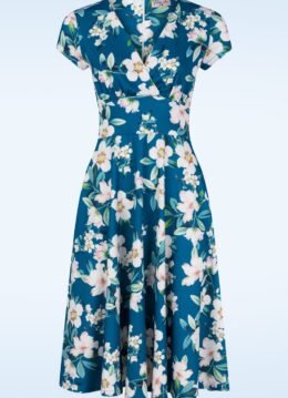 ”Evening blue like a twilight wish!” De inspiratie van onze in-house designers dit seizoen was ”Bright Dreams in Neon Lights”. Maar het blijft niet bij dromen want deze collectie is als een droom die ook daadwerkelijk uitkomt! Deze classy swing beauty beweegt gracieus met je mee als je de sterren van de hemel danst. Ze is voorzien van corrigerende bengaline shapewear en is uitgevoerd in een zware, iets dikkere, stretchy glitterstof in avondblauw voor een spotlight waardige fit. ”Pure starlight in motion!” * Swing model * V-hals met knoopdetail * 1/2 mouwen die ietwat off-shoulder vallen * Afneembare riem, voor een extra ‘snatched’ taille * Volledig gevoerd (corrigerende bengaline shapewear) * Blinde rits in de zijnaad * Gorgeous model en Pin Up Doll next door Greta Gardner is 1,72: haar pumps en accessoires zijn haar eigen treasures