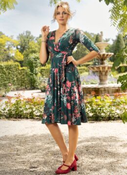 Topvintage exclusive ~ Adriana Floral swing jurk in donkergroen