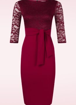 Topvintage exclusive ~ Felicity kanten pencil jurk in wijnrood