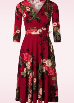 Deze elegante 50s Caryl Floral Swing Dress in Wine is een echte vintage beauty die perfect is voor elke gelegenheid! De aansluitende top met 3/4 mouwtjes heeft een prachtige V-halslijn, mooie overslag, flatterende geplooide tailleband met vaste strikbandjes en een zwierige semi-swing rok. Uitgevoerd in een glad en soepel, stretchy, wijnrood slinky stofje voorzien van een bloemenprint dat heerlijk draagt en niet kreukt. Geniet van de complimentjes die je krijgt, zodra je Caryl draagt! * Semi-swing stijl * Gevoerde top * Vaste overslag * 3/4 mouwen * Geplooide tailleband * Vaste strikbandjes * Geen rits of knopen * Exclusief bij Topvintage verkrijgbaar * Valt bij een lengte van 1,70 m over de knie