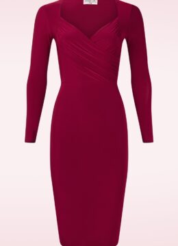 Topvintage exclusive ~ Camila slinky pencil jurk in wijnrood