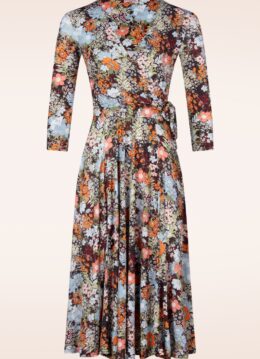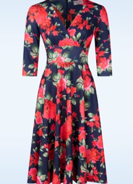 Voel je op en top vrouw in Colette! Ze heeft een prachtige geplooide overslagtop met een sexy V-halslijn en een sierlijk strikdetail in de taille. De flatterende swingrok en 3/4-mouwen zorgen voor een flinke portie elegantie — wow! Ze is uitgevoerd in een zacht, soepel en stretchy stofje met de look & feel van fluweel, bezaaid met bloemen. Dat staat garant voor kreukvrij draagplezier en een luxueuze uitstraling. Geniet van de complimentjes zodra je Colette draagt! * Swing stijl * Gevoerde top * Vaste overslag * 3/4 mouwen * Vaste strikbandjes * Geen rits of knopen; aantrekken en ready to go! * Exclusief bij Topvintage verkrijgbaar * Valt bij een lengte van 1,70 m over de knie