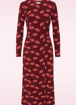“Red wine hue, kiss-print view… this dress does all the talking.” Deze Raffaella midi jurk is uitgevoerd in een soepel vallende, stretchy wijnrode stof die voorzien is van een grafische lippen print. * Midi jurk * Ronde halslijn * Lange mouwen * Flatterende plooitjes * Geheel gevoerd * Geen rits of knopen; aantrekken en ready to go! * Reikt bij een lengte van 1,70 m tot op de kuit