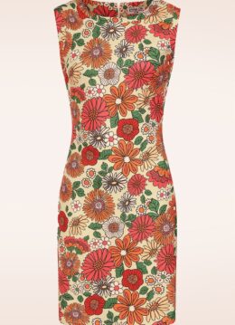 ”She’s giving us real retro vibes!” Groovy Tammy heeft een prachtige aansluitende overslag top met flatterende plooitjes, korte vlindermouwtjes, loopt vanaf de taille over in een flowy maxi rok en is voorzien van een kleurrijk retro printje in roze, groen en bruintinten. Je neemt haar tevens probleemloos óveral mee naartoe… ze is namelijk uitgevoerd in een soepele en stretchy, slinky stof met een lichte glans die licht van gewicht is en niet kreukt. * Vaste overslag met plooitjes * Gevoerde top voor extra comfort * Korte vlindermouwtjes * Afneembaar matching striklint * Geen rits of knopen; aantrekken en ready to go! * Reikt bij een lengte van 1,70 m tot aan de grond * Exclusief bij Topvintage verkrijgbaar