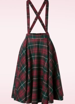 Sophie wollen geruite rok met bretels in rood en donkergroen