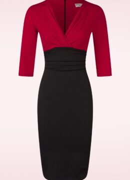 Topvintage exclusive ~ Nehla Pencil jurk in zwart en rood