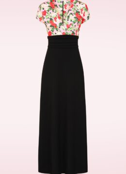 Topvintage exclusive ~ Rinda floral maxi jurk in zwart en roze