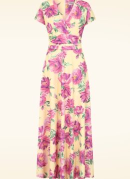 Topvintage exclusive ~ Rinda Floral maxi jurk in botergeel een roze
