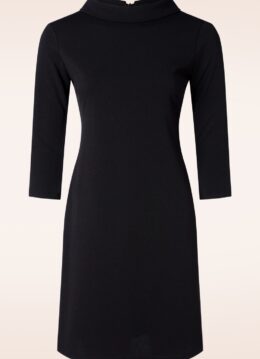 “We’re totally mod, uhm… mad about this dress!” 😉 Een sixties stijl a-lijn jurkje uitgevoerd in een soepele en stretchy, crêpe achtige zwarte stof die heerlijk draagt. * A-lijn model * Colkraagje * 3/4 mouwen * Blinde rits achterzijde * Exclusief bij Topvintage verkrijgbaar * Valt bij een lengte van 1.70 m boven de knie
