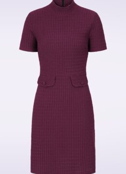 ”Release your MOD-ern fashionista!” 😉 Tessa is uitgevoerd in een iets dikker, stretchy, grof geweven, gerecyclede auberginepaarse stof, die heerlijk draagt. * A-lijn model * Iets opstaand kraagje * Korte mouwtjes * ‘Faux’ klepzakjes * Blinde rits achterzijde * Gerecycled polyester * Valt bij een lengte van 1.70 m net boven de knie * Exclusief bij Topvintage verkrijgbaar