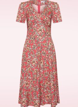 Deze Hollywood Circle Dolores jurk is een vintage droom die uitkomt! Super vrouwelijk en elegant dankzij haar zwierige semi-swing stijl, mooie geplooide overslag en classy korte pofmouwen, wow! Uitgevoerd in een soepele en licht glanzende koraal gekleurde stof met de looks and feel van satijn en een prachtige bloemenprint in zachte oranje, zwart en crème tinten. Tevens is ze voorzien van een hele lichte stretch voor een heerlijk draagcomfort. Dromen zijn niet altijd bedrog 😉 * Semi-swing stijl * Vaste overslag * Korte pofmouwen * Blinde rits achterzijde * Valt bij een lengte van 1.70 m over de knie