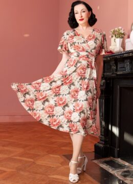 Irene Floral overslag swing jurk in crème en roze