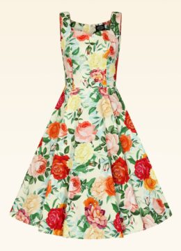 “Bloom bright, shine brighter.” Deze prachtige swingjurk is gemaakt van een stevige, maar soepelvallende botergele katoenmix met een schitterende bloemenprint en een lichte stretch voor optimaal draagcomfort. Voeg haar toe aan je garderobe en straal deze zomer volop! * Full swing * Subtiele sweetheart halslijn * Zijwaartse steekzakken * Blinde rits achterzijde * Combineer met een van onze petticoats voor een extra feestelijk effect * Valt bij een lengte van 1,70 m over de knie