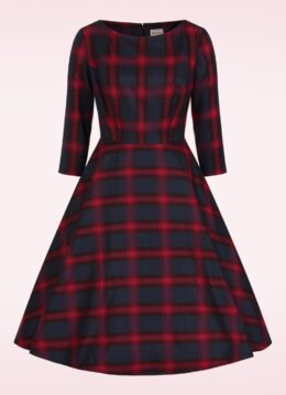 “Checks, charm, and a little mischief under the mistletoe!” Diana is perfect voor het feestelijke seizoen! Ze heeft een boothals halslijn, 3/4 mouwen en een all-over classy ruitjes patroon in rood en blauw. Ze loopt vanaf de taille uit in een zwierige swing rok met handige steekzakjes waardoor jij een super vrouwelijk silhouet krijgt. Uitgevoerd in een stevige en soepel vallende stofmix, die heerlijk draagt. * Swing model * Boothals halslijn * 3/4 mouwen * Zijwaartse steekzakken * Rits- en haaksluiting achterzijde * Valt bij een lengte van 1,70 m over de knie