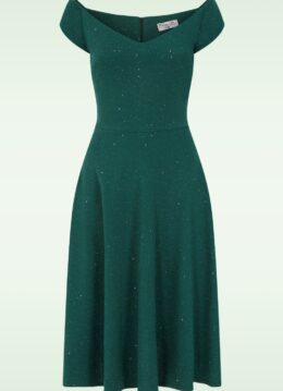 Topvintage exclusive ~ Giorgia glitter swing jurk in smaragdgroen