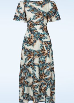 “Soft, light, and blooming with style.” Rene is zo’n jurk die je het liefst élke dag aantrekt. MAXI-maal genieten dus! De korte vlindermouwtjes en de elegante V-rug geven een vrouwelijke touch, en de flowy rok zwiert heerlijk met je mee. Dankzij de soepel vallende viscose draagt ze supercomfortabel en luchtig, met een crèmekleurige basis en een bloemenpatroon in donkerblauw en groen. * Maxi jurk * Hoge, ronde halslijn * V-rug * Korte vlindermouwen * Blinde rits achterzijde * Valt bij een lengte van 1.70 m tot op de enkel