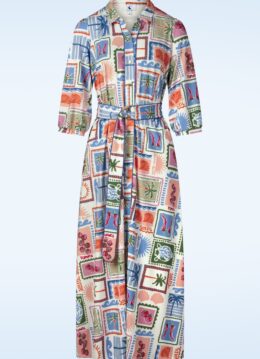 “Chase the sun in style.” Deze Soleil Escape maxi jurk brengt je regelrecht naar de zon! Ze heeft een elegant puntig kraagje, een functionele knopenrij, 3/4-mouwen en kan dankzij het afneembare striklint prachtig in de taille worden geaccentueerd. Uitgevoerd in een soepel, stretchy slinky stofje met een StayFresh coating en een kleurrijke zomerse print, voor een look die vrolijk, luchtig en onweerstaanbaar zomers is. * Loose-fit model * Geheel gevoerd * 3/4 pofmouwen * Knopenreeks * Afneembare strikriem, voor een extra ‘snatched’ taille * Valt bij een lengte van 1,70 m tot halverwege de kuit * StayFresh coating!