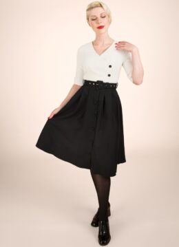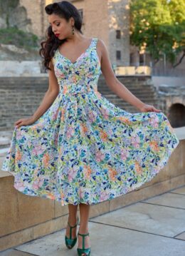 Vintage swing jurken kun je kopen in allerlei soorten modellen en kleuren. Want hoewel de meeste swing jurken een wijde jurk hebben waar je bijvoorbeeld een petticoat onder zou kunnen dragen, zijn er ook swingdresses met rechte rok. Ook de bovenkant is nogal uiteenlopend van model, zo heb je swing jurken met haltersluiting, spaghetti bandjes of zelfs met (half-) lange mouwen.