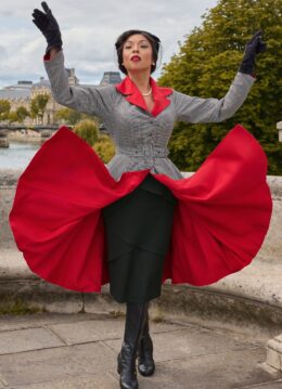 “Two looks in one timeless piece!” Dit prachtige herfstitem uit de nieuwe collectie is geïnspireerd op de extraordinaire Marie-Louise Carven, een baanbrekende Franse couturière uit de jaren ’40 en ’50. Ze is een vintage-geïnspireerde beauty die moeiteloos wisselt tussen een opvallend rood en een klassiek grijs ruitpatroon, met prachtige contrasterende biezen. Ze heeft een flatterende fit-and-flare pasvorm, dubbele knopen en een bijpassende ceintuur, waardoor deze manteljurk zowel elegant als praktisch is. En ja, ze heeft zakken aan beide zijden! Uitgevoerd in een stevige, maar soepel vallende stofmix met een vleugje viscose en een hele lichte stretch, waardoor ze heerlijk comfortabel draagt. * Reversible manteljurk * Revers kraag * Functionele knopenreeks voorzijde * Afneembare riem, voor een extra ‘snatched’ taille * Voorzien van zakken * Valt bij een lengte van 1,70 m over de knie