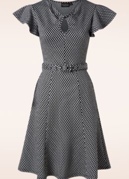 ”Twist and twirl!” Deze swing beauty met vlindermouwtjes en gedraaid detail bij de hals is uitgevoerd in een iets dikkere, maar soepele stretchy stof met een zwart/witte grafische ruitjesprint die heerlijk draagt. * Swing jurk * Gedraaid detail bij de hals * Korte vlindermouwtjes * Afneembare stoffen riem voor een extra ‘snatched’ taille * Geen rits of knopen; aantrekken en ready to go! * Valt bij een lengte van 1,70 m net over de knie * Let op; de kleur van het product op de video kan afwijken van de daadwerkelijke kleur van het product