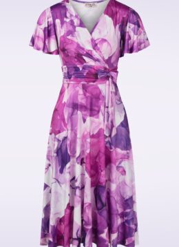 Topvintage exclusive ~ Irene Aquarel Cross Over swing jurk in paars