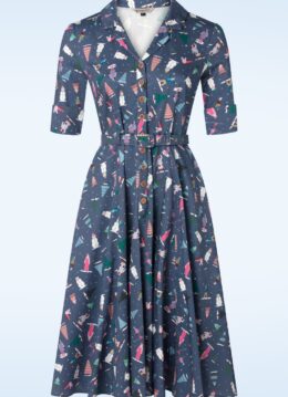 ”Walking in a winter wonderland!” Deze Ski Snow Season swing jurk heeft een elegante V-halslijn, reverskraagje, 3/4 mouwen en loopt uit in een prachtige swing rok, die jou een prachtig vrouwelijk silhouet geeft! Uitgevoerd in een stevige, maar soepele katoenmix (lichte stretch) voorzien van een schattige winterse print.  * Swing model * V-halslijn * Reverskraagje * 3/4 mouwtjes met splitjes * Reeks knopen * Afneembare riem * Zijwaartse steekzakken * Valt bij een lengte van 1,70 m tot halverwege de kuit