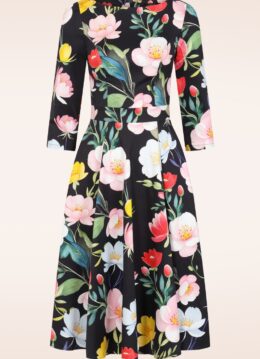 • Topvintage Exclusive ~ Garden Whispers swing jurk in zwart en multi