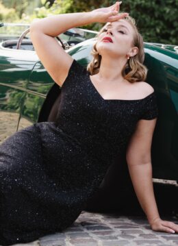 Waan je een classy celebrity Diva in deze onweerstaanbaar swing dress! Dit seizoen hebben onze eigen in-house ontwerpers zich laten inspireren door de iconische stijl van Ava Gardner in de film ‘Barefoot Contessa’. Classy, super vrouwelijk en een tikkeltje sassy. Uitgevoerd in een stevige maar stretchy, high quality, zwarte viscosemix die een genot is om te dragen en gracieus met je meebeweegt. Hollywood of Holland? Het maakt niets uit… jij bent de hoofdrolspeelster zodra je deze stunner aantrekt! * Swing model * Gevoerde top * Diamantvormige halslijn * 3/4 pofmouwtjes met omslagjes * Afneembare roos corsage * Blinde rits achterzijde * Elisabeth (Barinovael) is 1,67 m: haar pumps en accessoires zijn haar eigen treasures