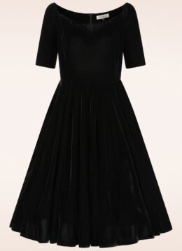 Topvintage exclusive ~ Darlene Velvet swing jurk in zwart