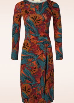 ”Always show your true colours!” Fresia heeft een prachtige aansluitende overslag top, 3/4 mouwen en een flatterende geplooide tailleband met een decoratief strikje. Vanaf de taille gaat ze over in een chique lange maxi rok. Ze is uitgevoerd in een glad en licht glanzend, soepel en stretchy, slinky stofje met een kleurrijke geometrische print. * Maxi jurk * Vaste overslag * Gevoerde top * 3/4 mouwen * Geplooide tailleband met vaste strikbandjes * Rok is gedeeltelijk gevoerd * Geen rits of knopen; aantrekken en ready to go! * Reikt tot op de enkel bij een lengte van 1,70 m * Exclusief bij Topvintage verkrijgbaar