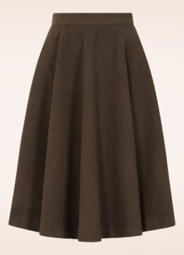 “The skirt that speaks fluent grace.” Tara is exclusief bij Topvintage verkrijgbaar en wordt hoog in de taille gedragen vanwaar ze uitloopt in een zwierige swing rok waardoor er een super vrouwelijk silhouet ontstaat. Uitgevoerd in een stevige, maar soepele en zachte donkerbruine stof. * Swing stijl * Zijwaartse steekzakken * Blinde rits zijkant * Voorzien van een onderrok * Kan gecombineerd worden met een van onze petticoats * Exclusief verkrijgbaar bij Topvintage * Valt bij een lengte van 1,70 m over de knie