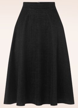 “Elegance is always in style.” Deze zwarte swing rok is het toonbeeld van tijdloze klasse. Ze heeft een flatterend, vrouwelijk silhouet dat subtiel uitloopt voor die iconische fifties flair. De handige steekzakken voegen een vleugje praktisch gemak toe, terwijl de stevige maar soepel vallende stof zorgt voor een elegante beweging bij elke stap. * Swing rok * Voorzien van zakken! * Rits met haaksluiting zijkant * Valt bij een lengte van 1,70 m over de knie